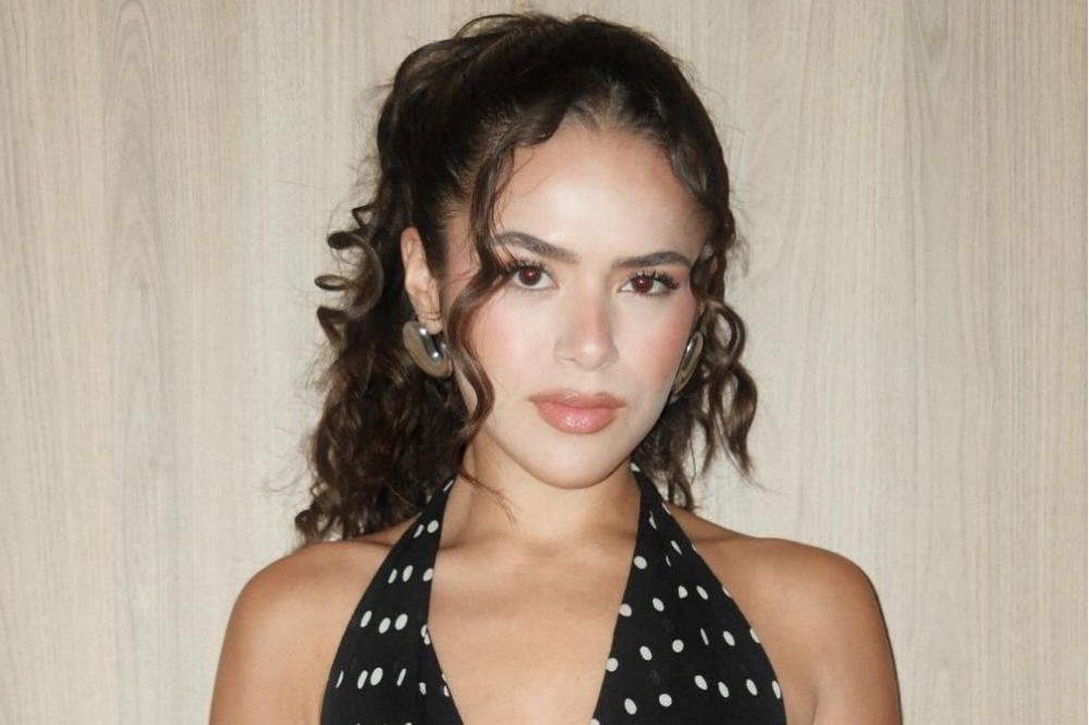 Para complementar o visual, Maísa escolheu uma blusa tomara-que-caia com decote em gota e estampa de poá, combinada a um minishort preto. O penteado, um rabo de cavalo com mechas soltas, assegurou conforto para a noite, enquanto a maquiagem apostou em um estilo natural, com destaque para cílios volumosos, blush suave e lábios com efeito glossy.