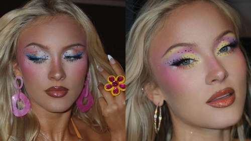 O olhar é, sem dúvida, o ponto alto das maquiagens de Zara Larsson. A cantora não hesita em combinar diferentes tonalidades de sombras, como azul, rosa, verde e laranja, criando composições ousadas e cheias de personalidade.